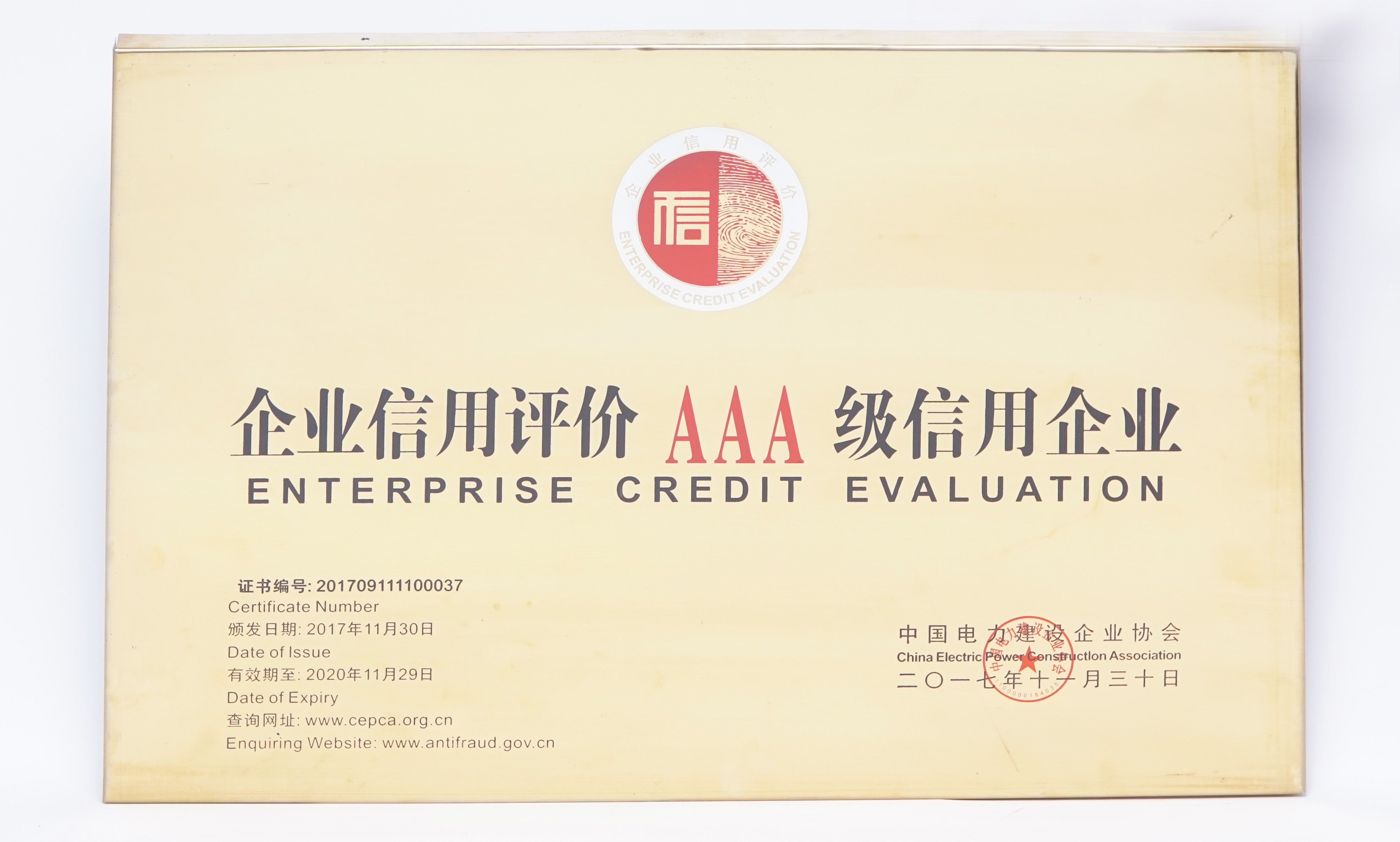 企业信用评价AAA级信用企业