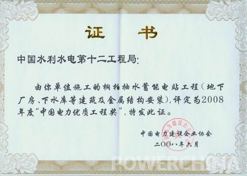 引子渡水电站获中国电力优质工程