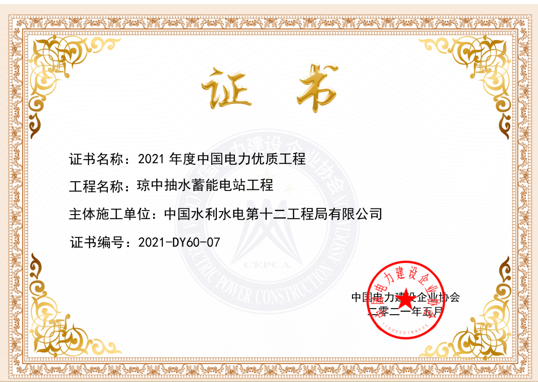 近日,公司承建的海南琼中抽水蓄能电站工程获2020年度中国电力优质工程奖。 海南琼中抽水蓄能电站位于海南省琼中县,电站安装3台单机容量200兆瓦的可逆式水泵水轮发电机组,总容量装机600兆瓦,为大(2)型二等工程。枢纽建筑物主要由上水库、输水系统、地下发电厂房及下水库等组成,主要承担海南电力系统的调峰、填谷、调频、调相、紧急事故备用和黑启动任务。. 项目自开工以来,就确定以争创国家优质工程为质量目标,建立健全三标管理体系,编制了创优策划方案,优化施工工艺,严格过程控制。通过施工过程中设置质量控制点,重点加强工序质量控制,严控隐蔽工程质量验收、技术交底和三检制。同时,为克服面板混凝土的浇筑质量控制困难,大坝填筑料源多样性等影响,项目部超前谋划、科学布置、精心组织,战胜了海南高温、多雨、强台风等不利条件,以高度的责任感和强大的执行力,历经三年努力拼搏、坚持不懈,高质量完成各项质量指标,获得建设单位和评审专家的一致好评。