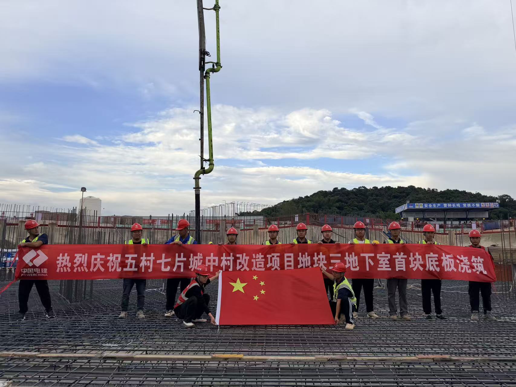 11月11日,广州市黄埔区五村七片城中村改造项目复建地块三迎来关键性建设进展——地下室首块底板混凝土顺利浇筑完成,标志着项目全面进入主体结构施工阶段,为后续工程高效推进奠定了坚实基础。 地下室底板作为工程“地下基石”,是承载上部结构荷载、抵御地下水侵蚀的重要构筑物,其施工质量直接关系到整体结构安全与耐久性。为确保首块底板浇筑任务顺利完成,项目团队提前统筹规划施工场地布局,科学配置机械设备与人力资源,组织开展专项技术交底,持续优化施工组织方案,全过程落实驻场技术质量管控,对钢筋绑扎、模板支护关键环节逐项验收、闭环管理。浇筑期间,安排专人全程监控,精准把控混凝土配比、搅拌、运输、浇筑等各个环节,全体建设者以精益求精的态度,践行“品质为先”的建设理念,圆满完成浇筑目标。 地块三项目规划总用地面积约3万平方米,总建筑面积16.89万平方米,地上建筑面积12万平方米,地下建筑面积4.8万平方米。建设内容包括6栋24—32层高层住宅、地下室车库、商业、公建配套等附属。项目建成后,周边公共服务设施也将迎来全面升级,将有力推动黄埔区城乡融合发展与产城融合共进,打造成为区域城中村改造的示范样板工程。 首块底板的顺利浇筑,吹响了项目大干快上的“冲锋号”。下一步,项目部将以更饱满的热情和昂扬的斗志,严把质量关、安全关、进度关,全力以赴冲刺年度施工任务,为项目高质量履约、助力区域城市更新建设贡献坚实力量。