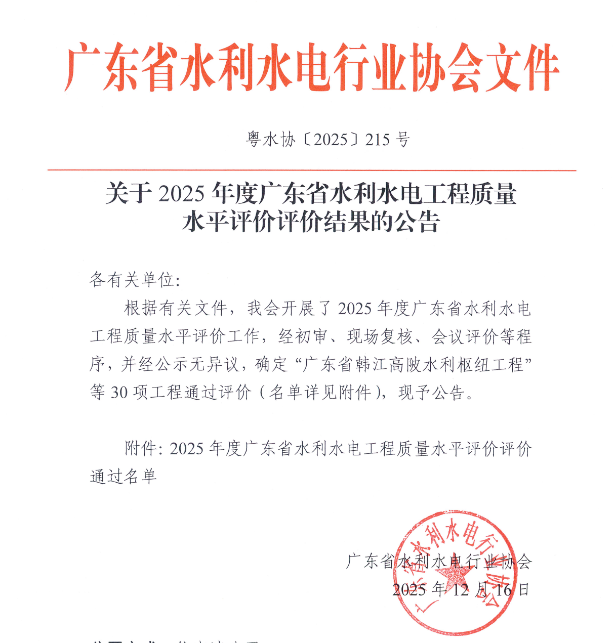近日,公司承建关键标段的湛江市引调水工程荣获2025年度“广东省优质水利工程奖”。 该工程作为环北部湾广东水资源配置工程的先导项目,被列为省、市两级重点民生工程,旨在系统解决湛江城区及沿线城镇淡水资源短缺问题,构建安全可靠的供水生命线。公司承建的标段线路复杂、任务艰巨,于2022年12月提前实现通水目标。自此,稳定的鹤地水库水源持续输送至湛江市区及沿线地区,彻底结束了当地长期依赖地下水的历史,直接惠及人口约120万。工程显著提升了区域供水安全保障能力与饮用水水质,为湛江市经济社会可持续发展奠定了坚实基础。 此次获奖,标志着该工程在规划、质量、技术及效益等方面获得行业高度认可,也是对公司在水利建设领域专业能力与责任担当的充分肯定。公司将珍惜荣誉、开拓创新,积极推广该项目的成功经验与优秀做法,进一步加强质量管理创新,全面提升工程质量管理水平,持续打造中国电建高质量品牌形象。