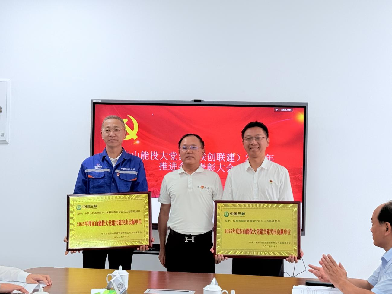 10月22日,在东山能投大党建年度评优表彰活动中,公司福建东山杏陈180兆瓦海上光伏电站项目部凭借在区域党建共建工作中的优异表现和突出贡献,被授予2025年度“共建突出贡献单位”荣誉称号。同时,周剑波同志荣获“党员之星”称号,王阳同志被授予“金牌工匠”称号。