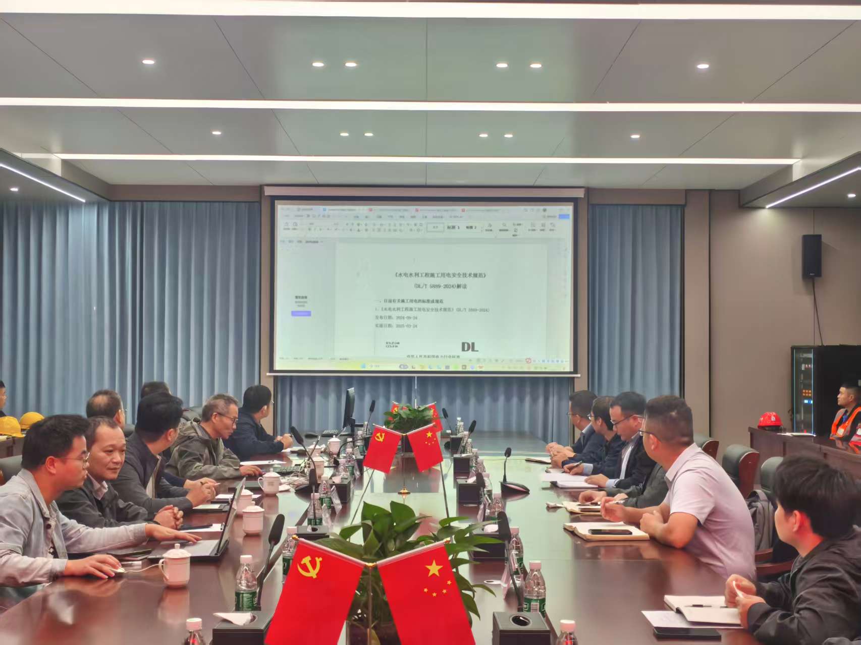 11月1日,在会议室组织开展了施工现场临时用电专项培训。培训主要围绕最新发布的《DL/T 5889-2024 水电水利工程施工用电安全技术规范》展开。培训会上,专家组详细阐述了规范中关于变配电设施、配电线路、接地与防雷、配电箱及开关电器等关键环节的安全技术要求,并结合施工现场常见的用电隐患和实际问题,进行针对性的分析与答疑。参会人员积极互动,就日常工作中遇到的配电设置、接地保护、漏电防护等问题与专家进行了充分交流,现场学习氛围浓厚。为进一步增强培训效果,专家还以二级配电箱和开关箱为例,现场展示了实物配电箱的结构与接线规范,通过直观演示加深了参训人员对规范内容的理解与应用能力。
