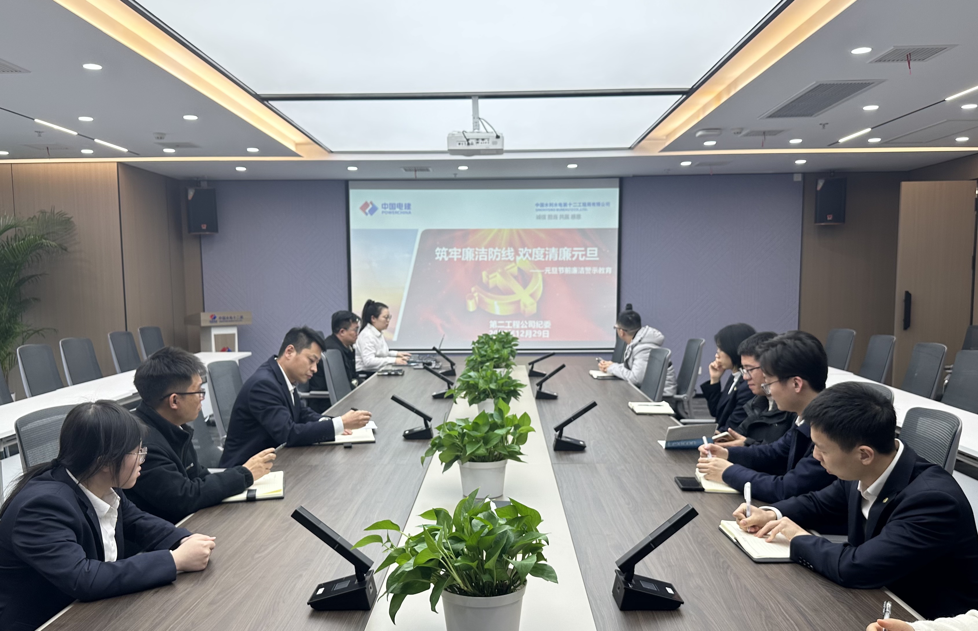 元旦将至,为深入贯彻落实全面从严治党要求,营造风清气正的节日氛围,12月29日,第二工程公司纪委组织开展元旦节前廉洁警示教育,二公司总部全体职工参加此次活动。